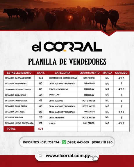 FERIA DE INVERNADA POR PANTALLA 27/08/2025 El Corral S.A. - 10 lotes